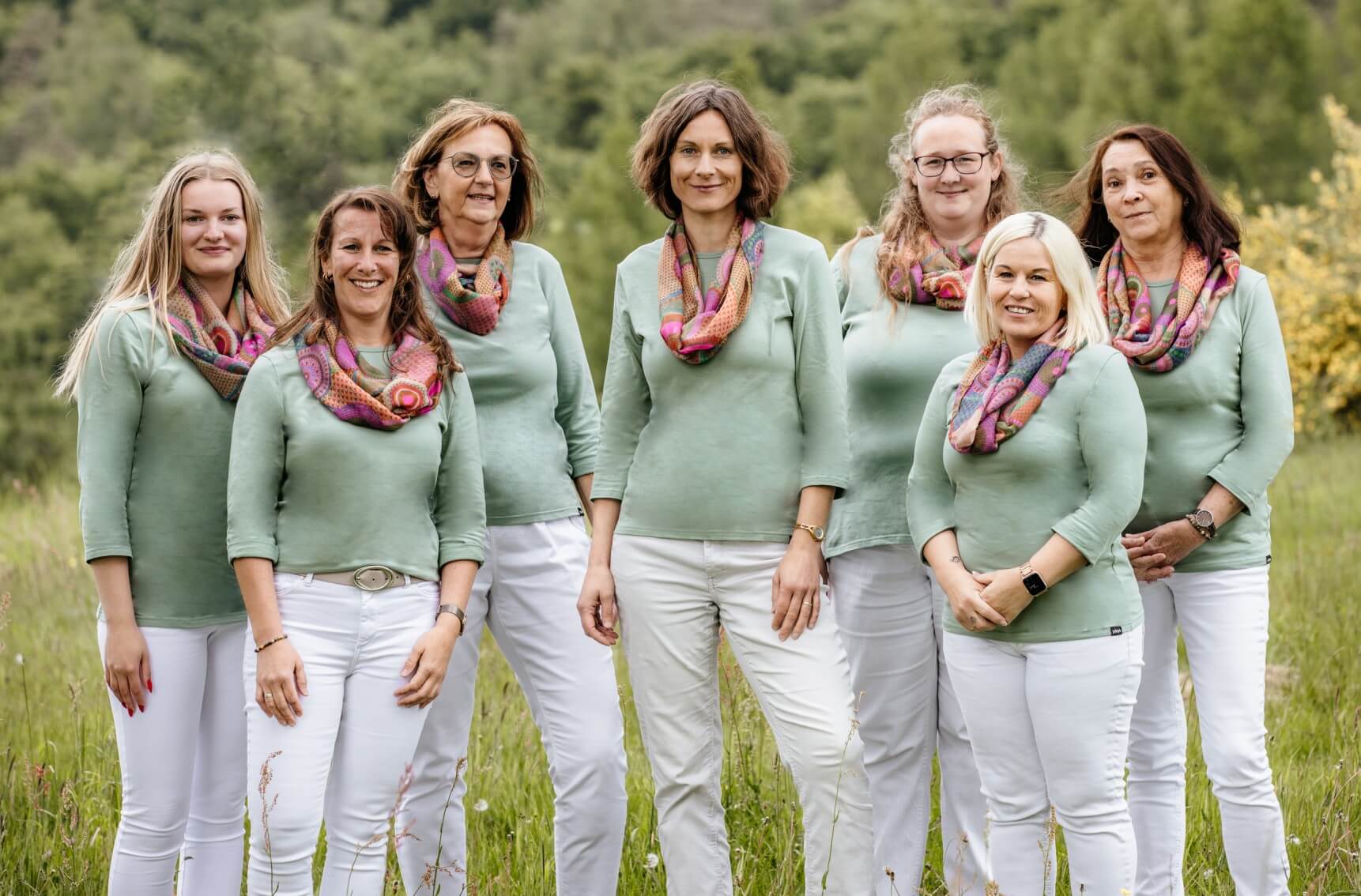 von links nach rechts: Camilla Seelmann (Auszubildende MFA), Steffi Sachs (MFA und Verah/Näpa), Karin Amthor (MFA), Maria Glück (Fachärztin für Allgemeinmedizin, Psychiatrie und Psychotherapie), Carina Horak (MFA), Karina Kistner (MFA), Dagmar Amend (MFA)